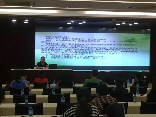講座現場 應杭州經濟技術開發區人力資源協會的邀約,我司副總經理李雙全7月15日下午在城建文化館做了“勞資糾紛處理技巧”講座,此次培訓主題切中不少成員企業需求,企業的參與熱情很高,共吸引40多家企業的相關負責人到場,甚至有不少外地的企業和同行參加。