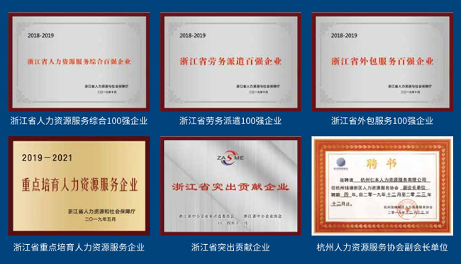 目前,與仁本公司結成戰略合作伙伴的企業有顧家家居、東華鏈條集團、春風控股、八佰伴、三花控股、中國旺旺、順豐速運、海螺集團、徽商銀行、三只松鼠、香飄飄集團、杭州師范大學等百家企業,公司為浙江省中小企業人力資源輸送基地,榮獲浙江省突出貢獻企業獎,還先后被全國人力資源管理協會、浙江省、安徽省、杭州市、寧波市和宣城市等多家政府部門授予中國勞務派遣誠信單位、人才中介先進單位、和諧人事勞動關系先進單位等榮譽。