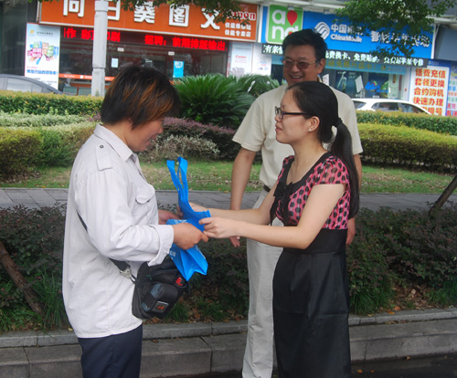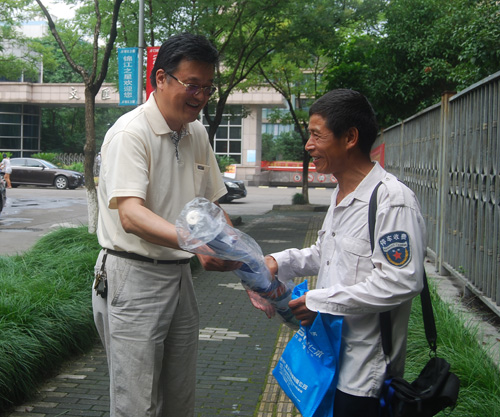 | 杭州仁本為停車收費(fèi)員定期送防暑物品 |