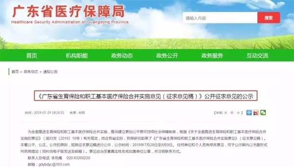 7月29日,廣東省醫(yī)療保障局發(fā)布《廣東省生育保險和職工醫(yī)療保險合并實施意見(征求意見稿)公開征求意見的公示》,公示指出:2019年年底廣東省將實現(xiàn),生育保險和基本醫(yī)療保險合并實施。