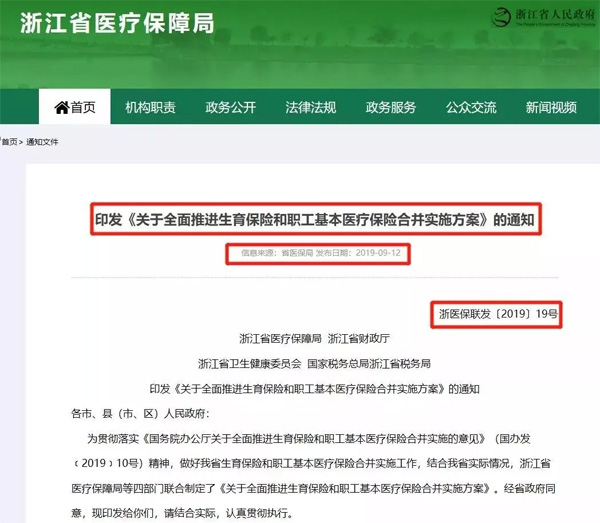 9月12日,浙江省醫(yī)保局發(fā)布《關(guān)于全面推進生育保險和職工基本醫(yī)療保險合并實施方案》的通知,明確兩險合并的具體實施方案。