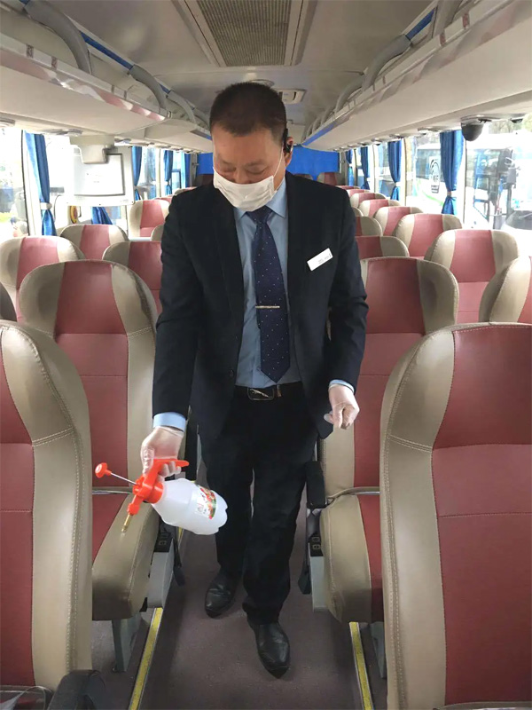 工作人員正在對大巴進行全面消毒