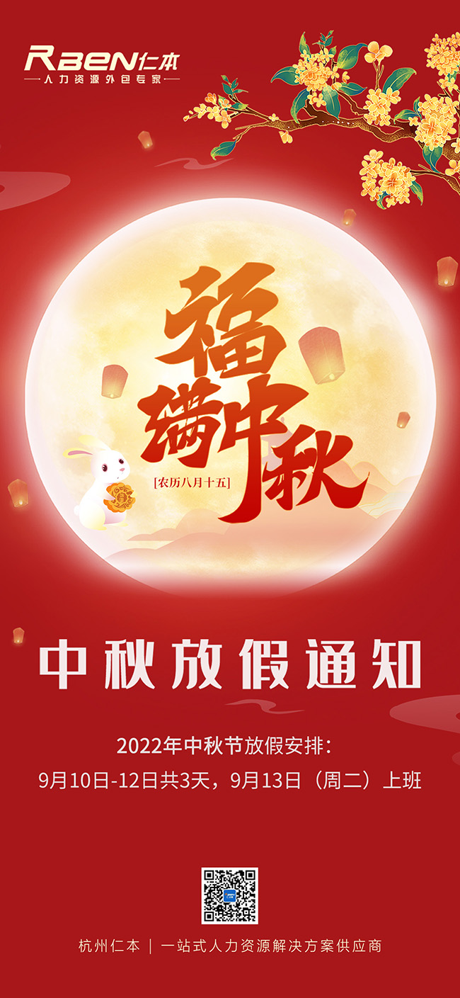 杭州仁本中秋假期為:9月10日至9月12日,共3天。