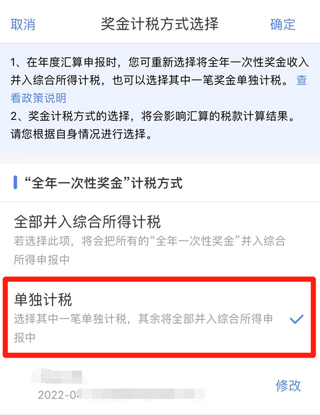 點開之后,你面臨兩個選擇:選擇單獨計稅,或選擇并入綜合所得計稅。