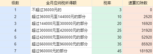 適用稅率:以全年一次性獎金收入除以12個月得到的數額對照月度稅率表確定: