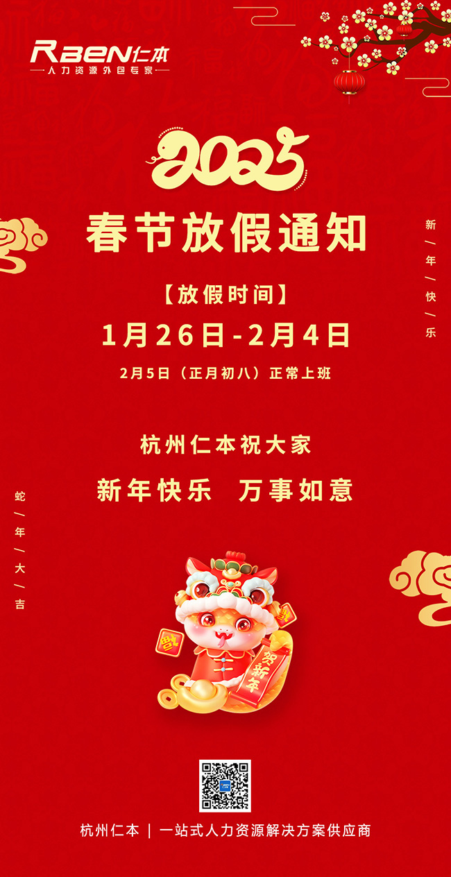 杭州仁本2025年春節(jié)放假通知: