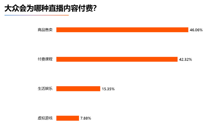 1、四成以上用戶最愿意為商品售賣和直播課程付費