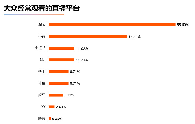2、淘寶、抖音成用戶最愛直播平臺