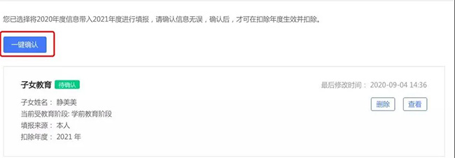 ③ 打開“待確認”狀態的專項附加扣除,核對信息;如有修改,可以點擊“修改”,信息確認后點擊“一鍵確認”。如下圖5、圖6: