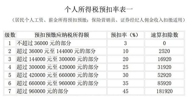 1、個人所得稅最新稅率表