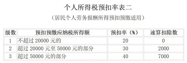 二、個人所得稅預扣稅率表