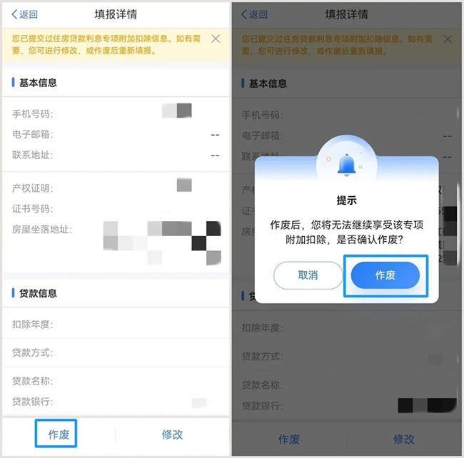 情形三:2024年需作廢專項附加扣除項目 1.點擊【專項附加扣除填報】,進入填報頁面。【填報記錄】選擇【查詢年度2024年】。 2.點擊進入想要作廢的專項附加扣除項目。點擊左下角【作廢】,確認作廢后,即可作廢成功。